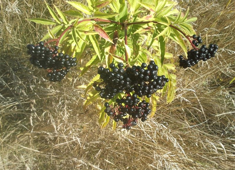 Бузина, которую недавно здесь собирали, высохла и осыпалась. Но теперь мы знали другую, куда и пошли прямо наверх по проторенной однажды дорожке. В прошлый раз Кейси здесь учуяла дичь, которую настойчиво желала спугнуть. Злые хозяева не пустили. Сейчас добыча отсутствовала, поэтому собака спокойно рыскала на трёхметровом поводке. Отстегнули дальше, где местность более знакомая.
