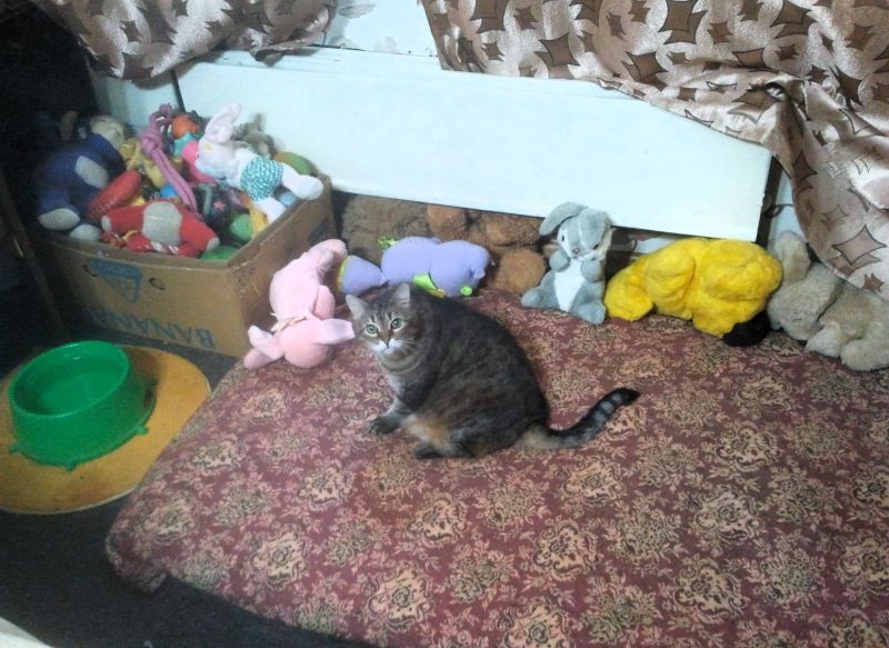 Пока я фотографировала, пришла Мурка. Что-что-что происходит? Потому что кошечка 17-и лет облюбовала давным-давно жилище собаки, да и маленький матрас тоже. Кейси пробовала выгнать — облом. Ещё не родилась та собака, которая справится с кошкой, хозяйкой квартиры. Поэтому Кейси ютится сбоку на свободном пространстве.