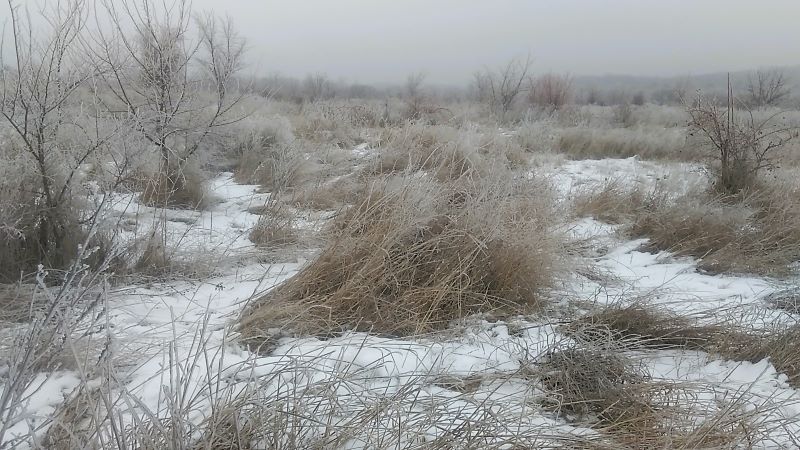 Кейси бежала впереди, муж посередине, я позорно стенала позади. Никакого плюса не наблюдали, зато прекрасно видели бурьян под ледяным дождём. Что делать, другого пути домой нет.