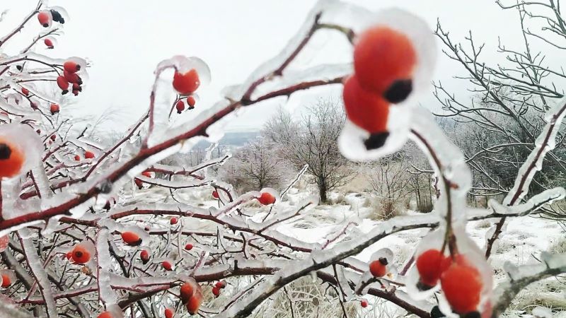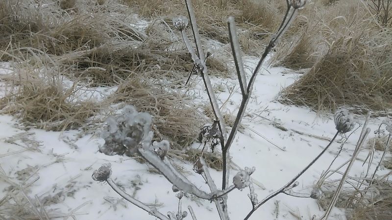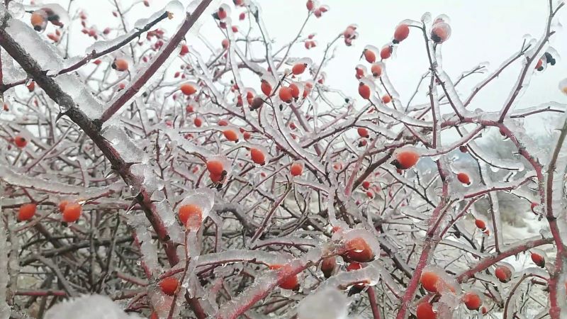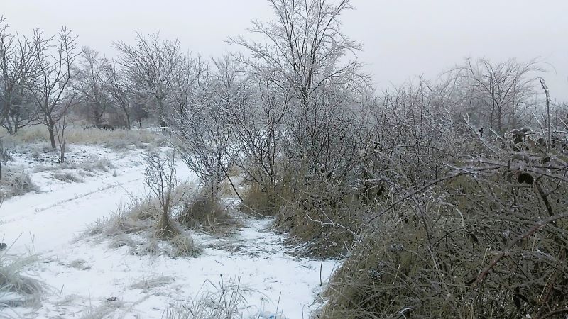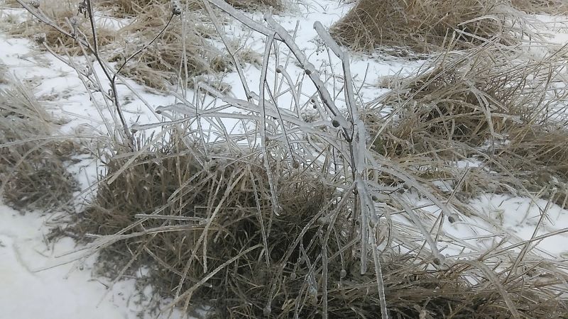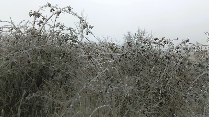 Шиповник. Но такую картину мы уже видели, когда в позапрошлое воскресенье первый раз попали в гололёд на поле. Вообще не ожидали. Правда, был значительно меньше.