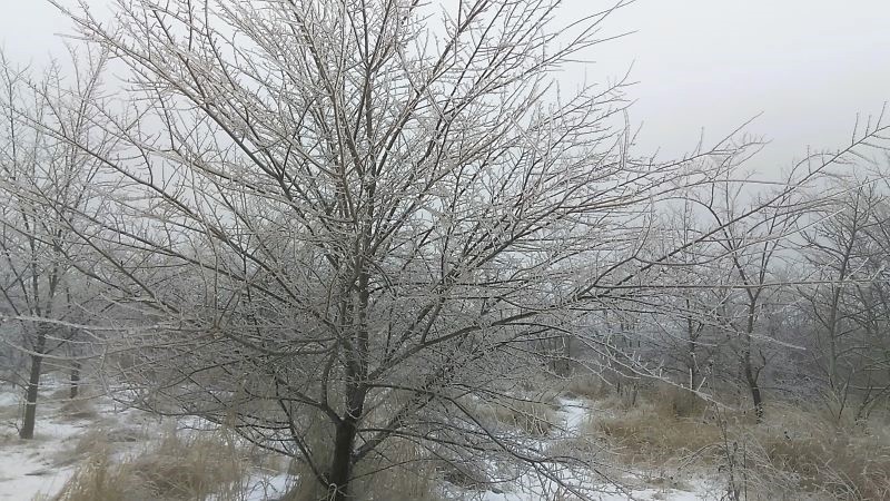 Стеклянное дерево. На каждую тонюсенькую веточку природа не пожалела усилий, все обернула в хрупкие коконы льда. И каждая травинка оказалась в сверкающей оболочке. Солнца не было, иначе бы ледяной мир блестел миллиардами граней, слепил глаза. Хрустальный сад, а не поле с бурьяном.