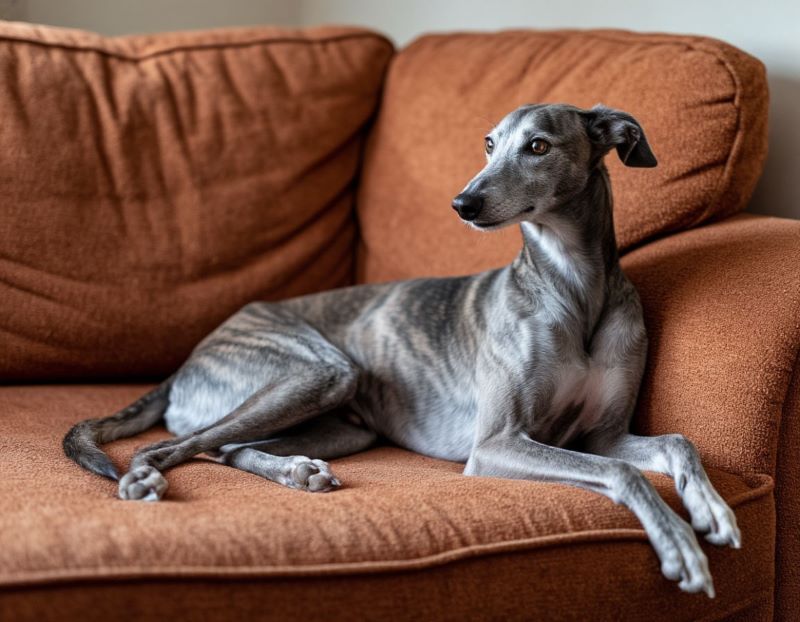 Грейхаунды плохо переносят холод и сырость, потому что шерсть без подшерстка. Соответственно, ненастная погода им не нравится. А дома тепло и хорошо! Диван мягкий, любимый хозяин рядом — что ещё нужно для счастья собаки?