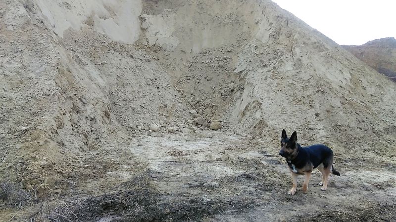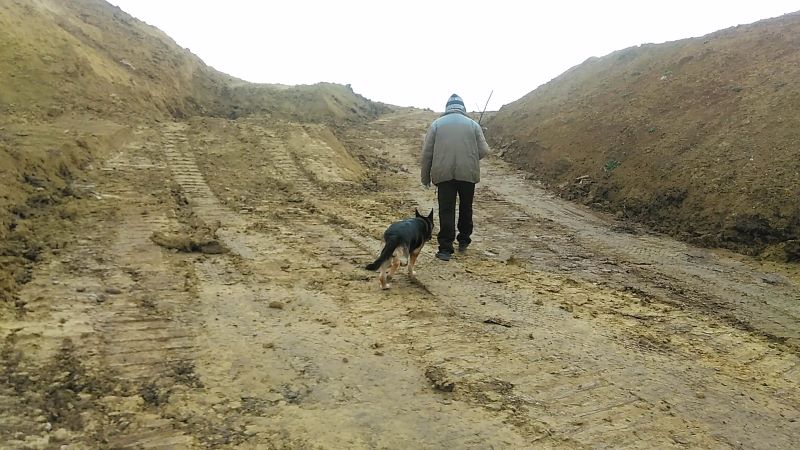 А поскольку земля сухая, надумали повернуть к террикону из песка, который высится возле стройки. На одном краю поля возводят жилые дома, но мы обычно гуляем с другой стороны, сюда приходим редко. И надеемся, что не слишком скоро доберутся до всей территории заброшенного поля, где растут фруктовые деревья, полезные травы и водится всякая дичь. Фазанов полным-полно, зайцев, косули заходят. Кусочек дикой природы через шоссе от города. Но стройка идёт.