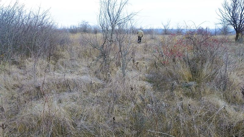 Мы решили не по дороге идти, что привычно, а полезли опять в бурьян. Пусть собака порадуется! Собака радовалась — охотилась в своё удовольствие. Засели непуганные фазаны, полезно и крыльями помахать. Птицы на поле жирные, ленивые, фитнес им Кейсинька устраивает.