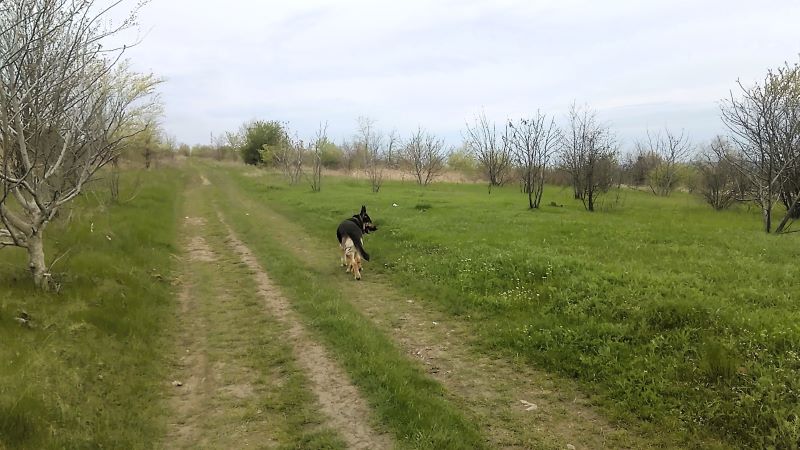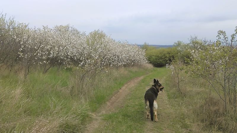 Но погода побаловала! В первый выходной день прошли к черешневым садам, куда ходим редко, на второй и вовсе счастье — на курган. Праздник для Кейси удался. Для меня с мужем, конечно, тоже, но речь о собаке, которая дома вылизала миску и спать завалилась. Хозяева позавтракали к двум часам дня и тоже рухнули на диван. Хорошие были праздники, потому что нам с мужем совершенно не нужны посиделки с застольями. Спасибо, что есть волшебное Поле, где раздолье для собаки, заодно и радость для хозяев.
