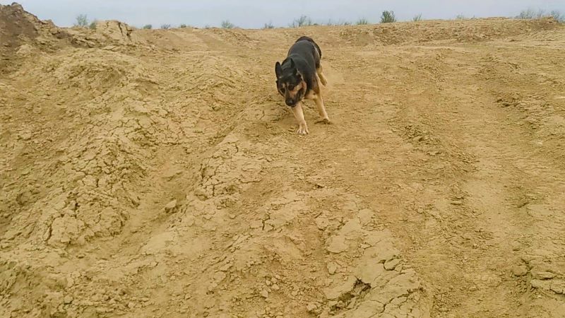 Кейси радостно бежала покорять «Эверест». Песчаный курган для стройки насыпали, сначала небольшой, осенью добавили раза в два. И дальше к шоссе второй курган есть, но туда мы не ходим. Последний раз Кейси побывала на вершине в конце зимы, когда снег лежал, весной пошла слякоть, не до восхождений. Теперь шли, наконец.