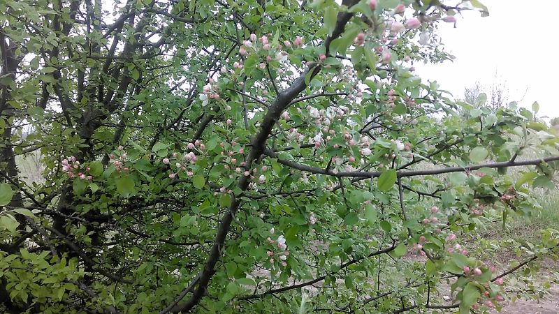 Ещё забыла — когда шли на курган, тоже совершенно неожиданно заметили довольно приличное дерево — яблоню. Абсолютно не помнили с мужем здесь никакой яблони раньше! Судя по всему, дерево просто не цвело. И позже в других местах на поле обнаружили неизвестные яблони. Точно в прежние годы не видели! Наверное, будет урожайный год.
